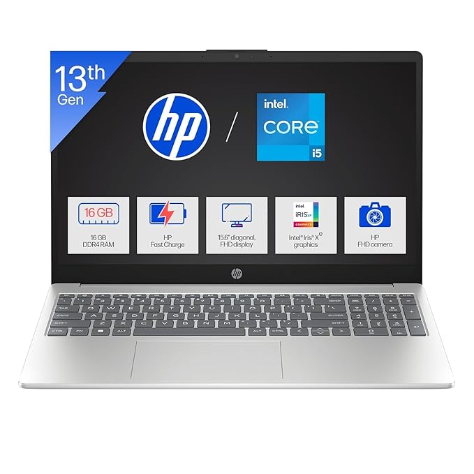 HP 15 (Fingerprint, Metal ID,Backlit KB Laptop) Intel 13th Gen Core i5-1334U (16GB DDR4 Ram,512GB SSD) 15.6”/39.6cm,FHD,Win11, M365 Basic(1yr),Office Home24,Silver,1.59kg,Iris Xe,FHD Camera hr0008TU