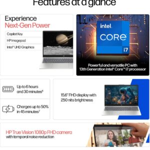 HP 15, Intel Ci7-13620H 13th Gen Laptop (16GB DDR4, 512GB SSD) Anti-Glare, Micro-Edge, 15.6”/39.6cm, FHD, Win11, M365 Basic(1yr), Office Home24, Silver,1.65kg, FHD Camera W P. Shutter, Backlit