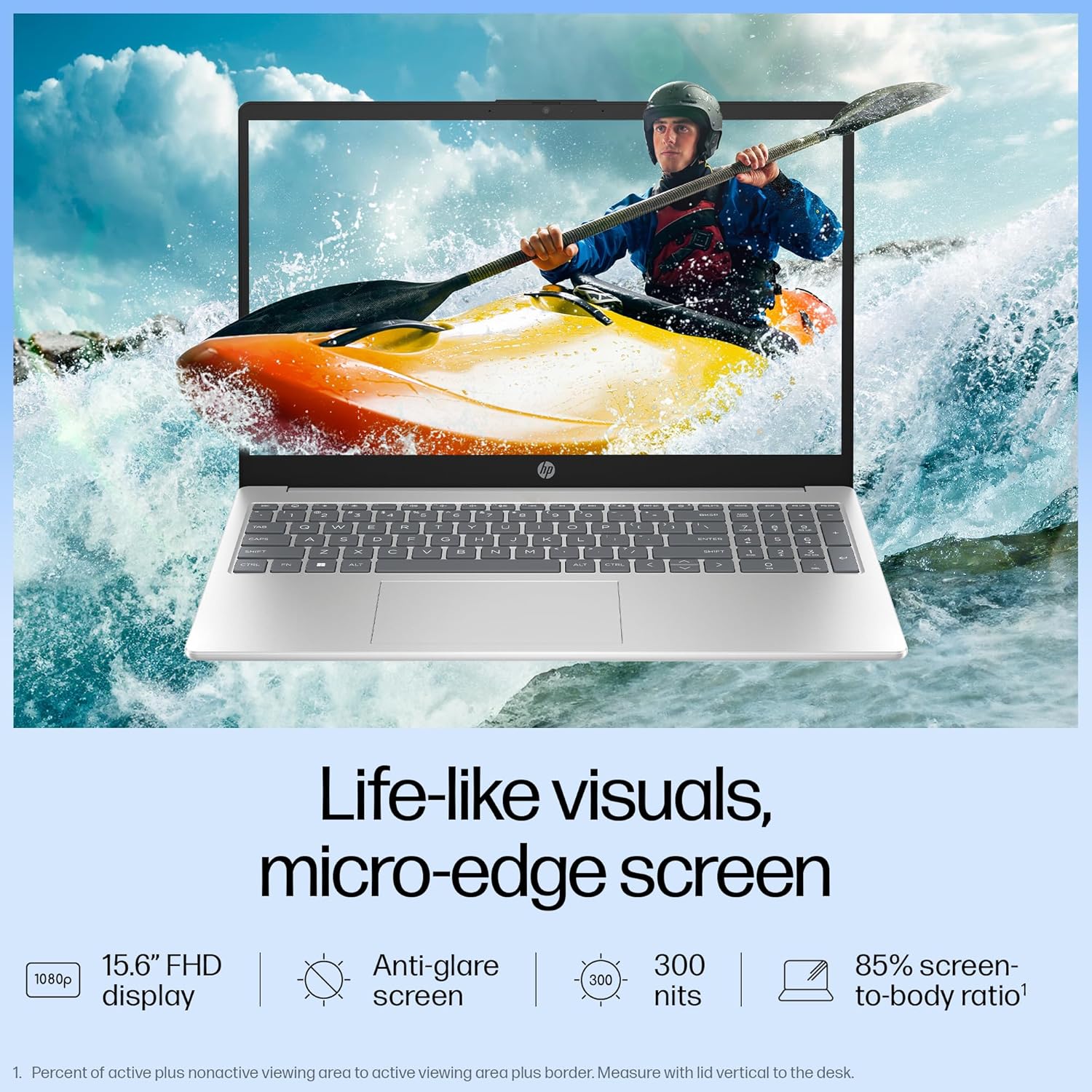 • Display & Graphics: 39.6 cm (15.6″) diagonal, FHD (1920 x 1080), IPS, micro-edge, anti-glare, 300 nits, 62.5% sRGB| Graphics:Intel Arc Graphics