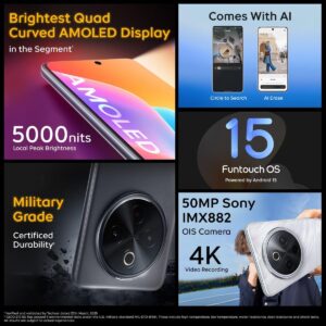 - Latest Software Experience: Runs on Funtouch OS 15, based on Android 15, offering a seamless experience with 2 years of Android updates, 3 years of security patches, *T&C apply