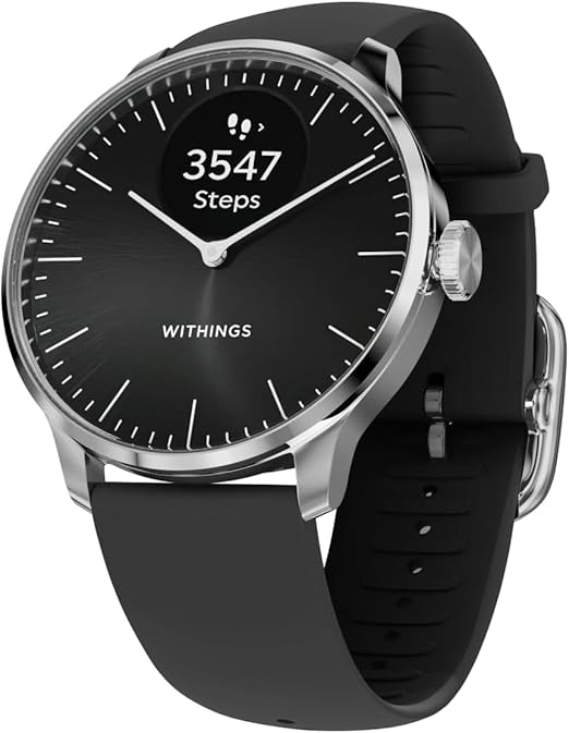 Withings ScanWatch Light – Hybrid Smartwatch, 24/7 Heart Monitoring, Activity Tracking, Cycle Tracking, Sleep Monitoring, Connected GPS, 30-Day Battery Life, Android & Apple Compatible (Black)